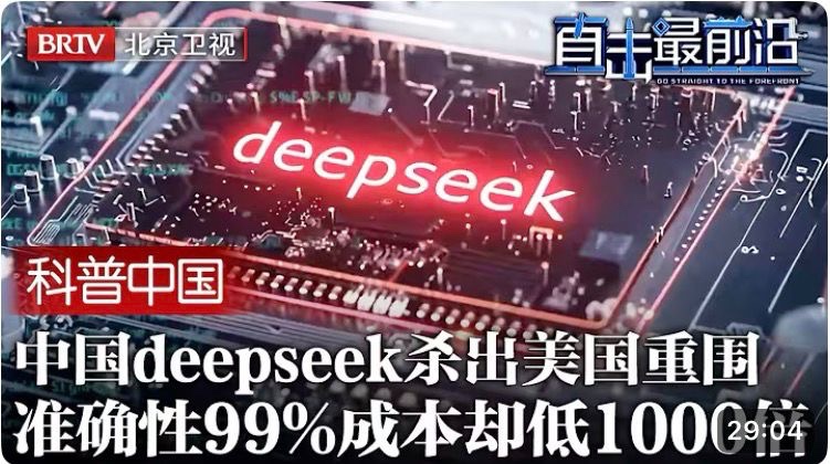 Video: China Science Communication, Direct from the Frontline video: China tells the world that AI is not an American exclusive! DeepSeek breaks through the siege, with 99% accuracy at 1,000 times lower cost. 科普中国直击最前沿視頻:中国告诉全世界,AI不是美国专享!deepseek杀出重围,准确性99%,成本却低1000倍 👉 https://youtu.be/EdFZ7e2sC7c?si=AxPNz_PsU-WSW99w 🇨🇳👍