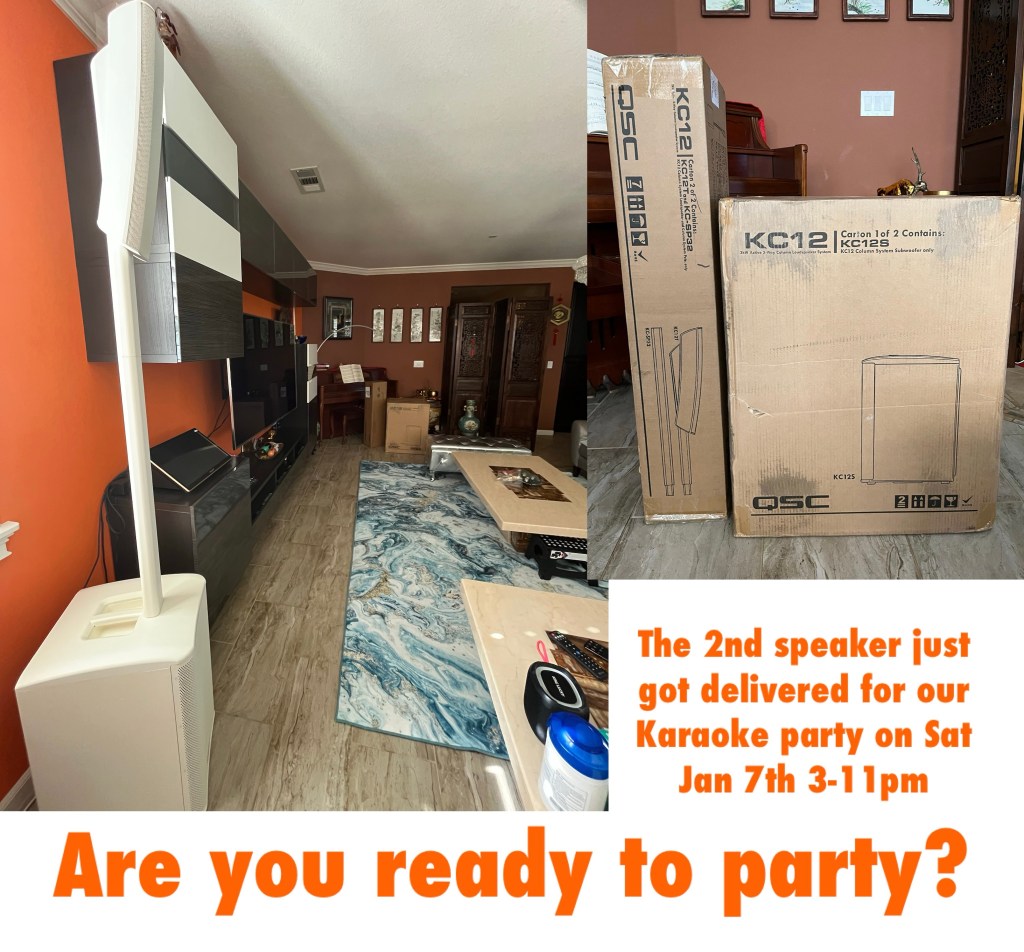 Video: Updated speakers & sound systems set up ready to Karaoke, rock and roll, may deploy DJI Neo2 for Aero film shooting on Saturday Feb 7th 3-11pm