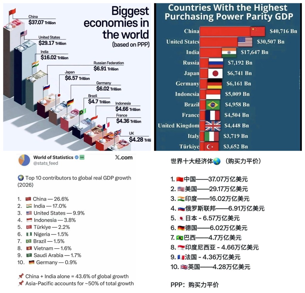 International Monetary Fund Official Announcement: China’s Purchasing Power Parity (PPP) GDP at $43.49 Trillion, Leading the U.S. by $13 Trillion… 国际货币基金组织官宣:中國購買力平價(PPP) GDP43.49萬億,領先美國13萬億…