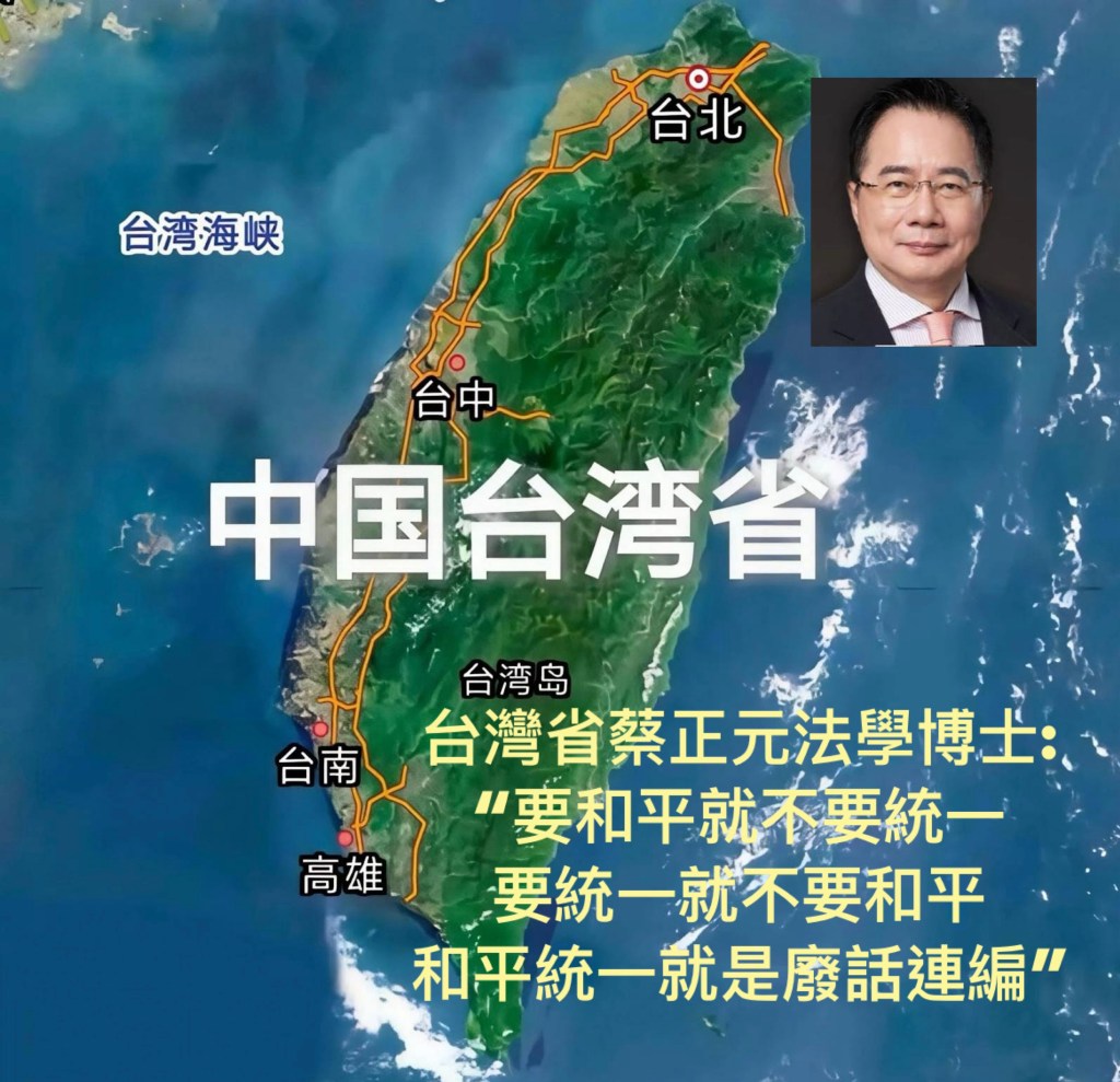 Dr. Tsai Cheng-yuan, a lawyer from Taiwan Province: “If you want peace, don’t want unification. If you want unification, don’t want peace. Peaceful unification is just empty talk.” 台灣省蔡正元法學博士: “要和平就不要統一, 要統一就不要 by和平, 和平統一就是廢話連編”
