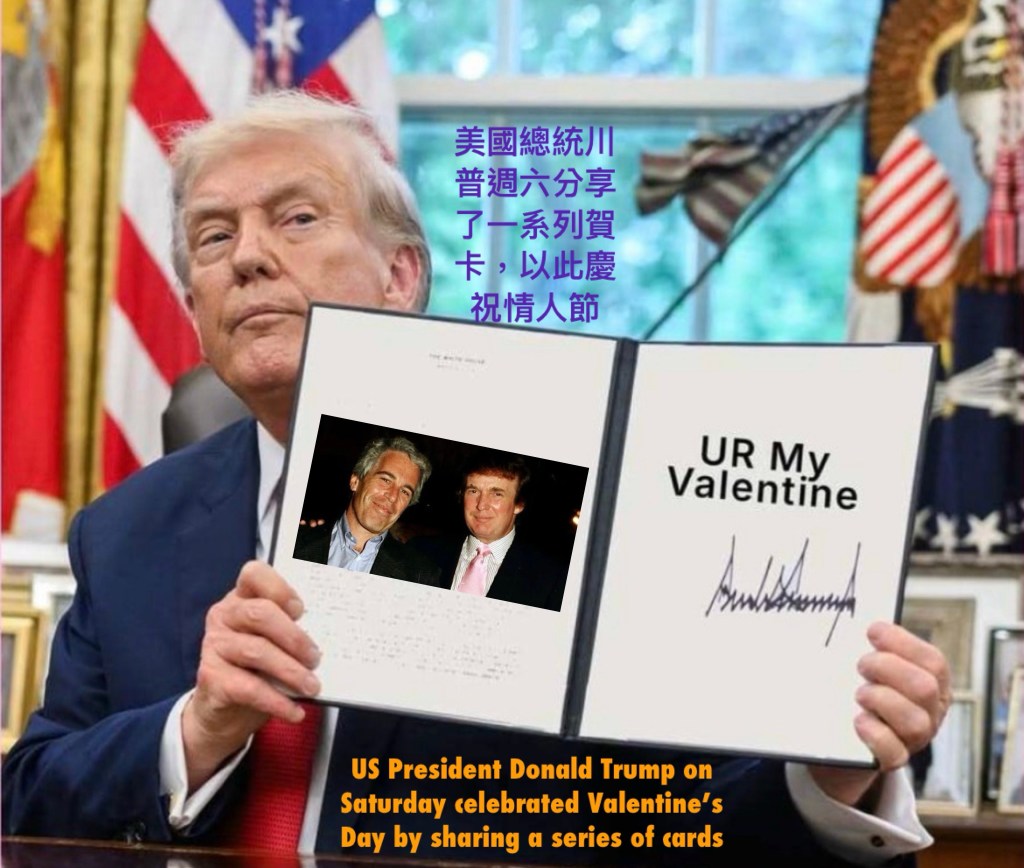 SCMP: US President Donald Trump on Saturday celebrated Valentine’s Day by sharing a series of cards 香港南華早報: 美國總統川普週六分享了一系列賀卡,以此慶祝情人節.