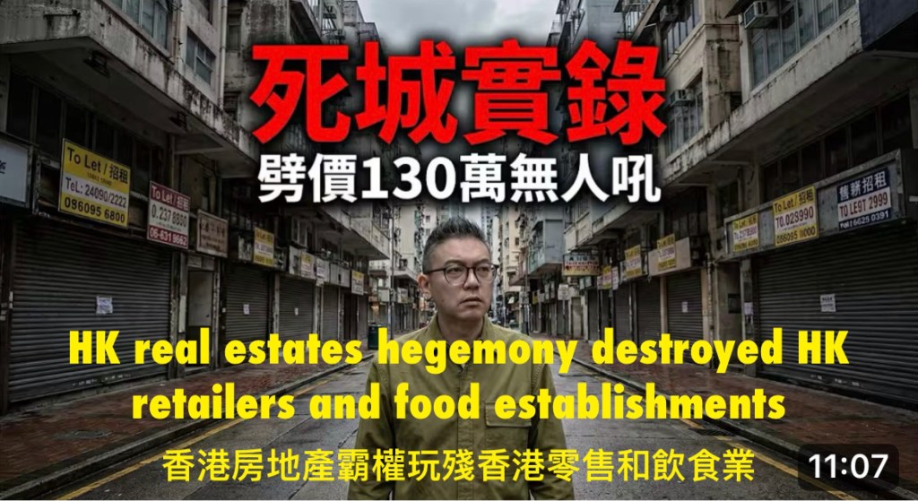 Video with English subtitles: HK real estates hegemony destroyed HK retailers and food establishments! 影片有英文字幕: 香港房地產霸權玩殘香港零售和飲食業.