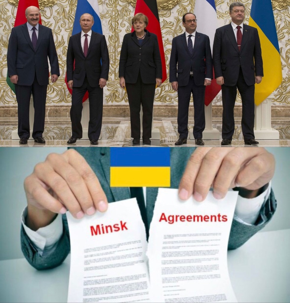The Minsk agreements, brokered by Germany and France, were supposed to be a roadmap for peace in the war-torn country, giving the regions of Donetsk and Lugansk special status within the Ukrainian state, whose rule they rejected after the 2014 Maidan coup [orchestrated by the Obama-Biden administration in Kiev].