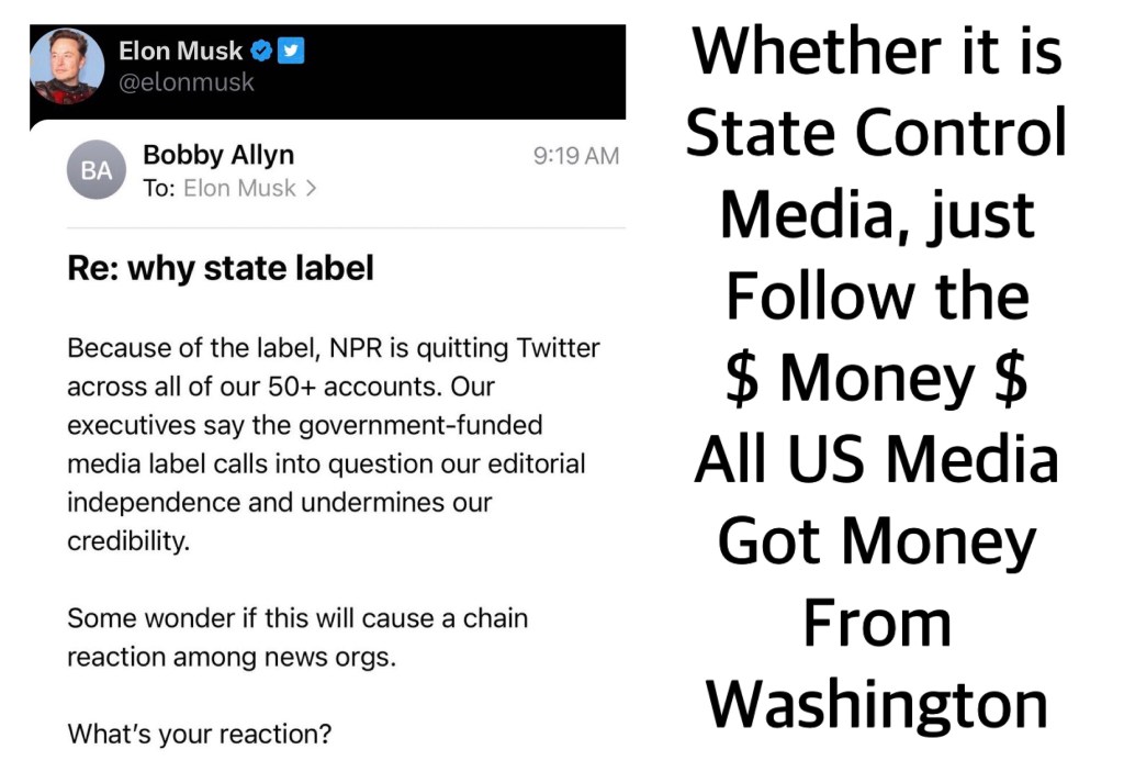 How to determine a State Control Media, just Follow the $ Money $ All US Media Got Money From Washington 如何決定是否國家控制的媒體,你只要跟隨 $ 錢 $ 的來源, 所有美國媒體都從華盛頓獲得資金