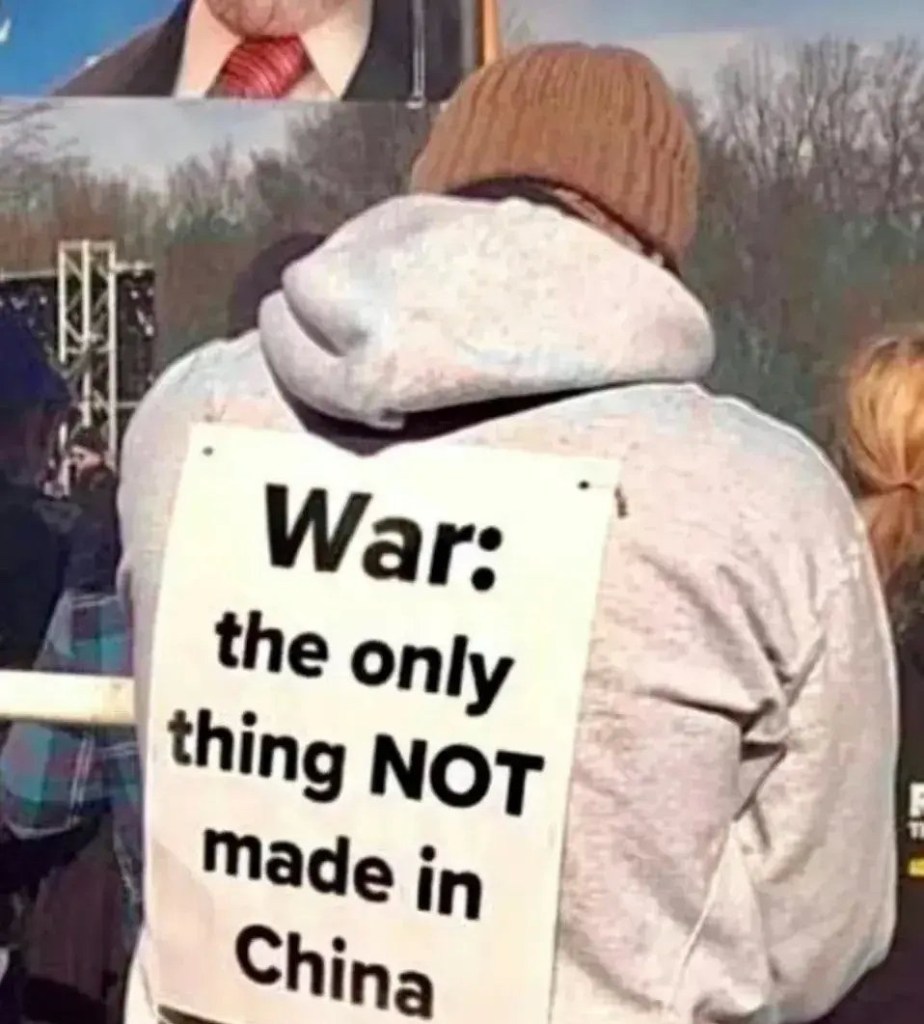 War: The only thing NOT made in China. 世界人民在覺醒: 戰爭是唯一一樣不是中國製造的東西.