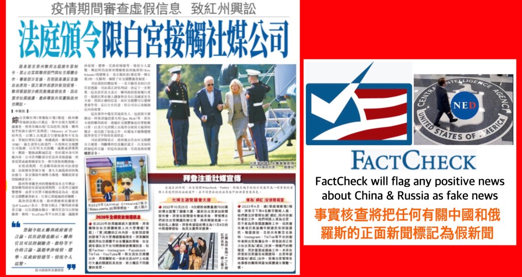FactCheck will flag any positive news about China & Russia as fake news 事實核查將把任何有關中國和俄羅斯的正面新聞標記為假新聞