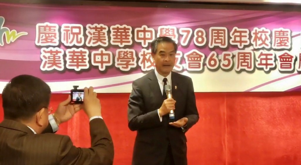 包括全国政协副主席、汉华中学嘉宾梁振英也参加和讲话还有现立法会议员我的老师叶国谦等到很多40多年前教过我的老师,非常开心!在热烈气氛中享受四年来第一次回香港老家的晚宴” 李小軒, 香港十二月九日