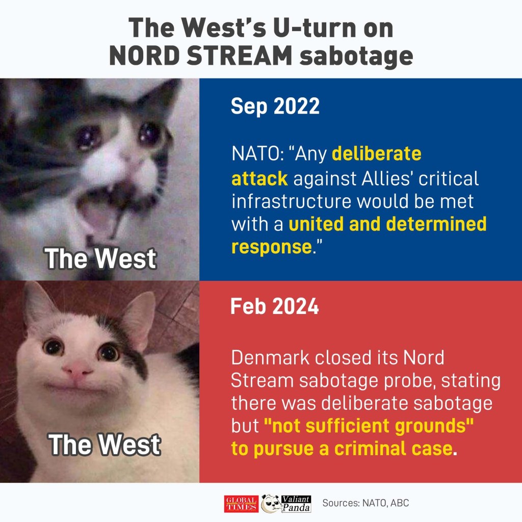 The West’s U-turn on Nord Stream sabotage because they are unable to handle when one NATO member attacks another NATO member (i.e. US & UK attacked another NATO member: Germany) 西方對北溪破壞行為態度大轉變,因為當一個北約成員國攻擊另一個北約成員國時(即美國和英國攻擊另一個北約成員國:德國),他們無法應對