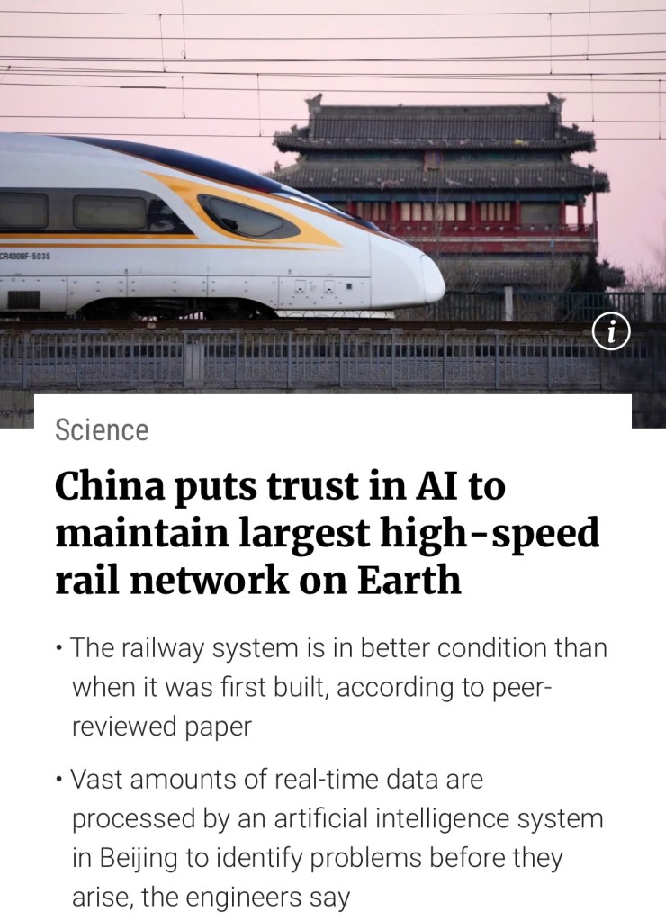 China is using artificial intelligence in the operation of its 45,000km (28,000-mile) high-speed rail network, with the technology achieving several milestones, according to engineers involved in the project.