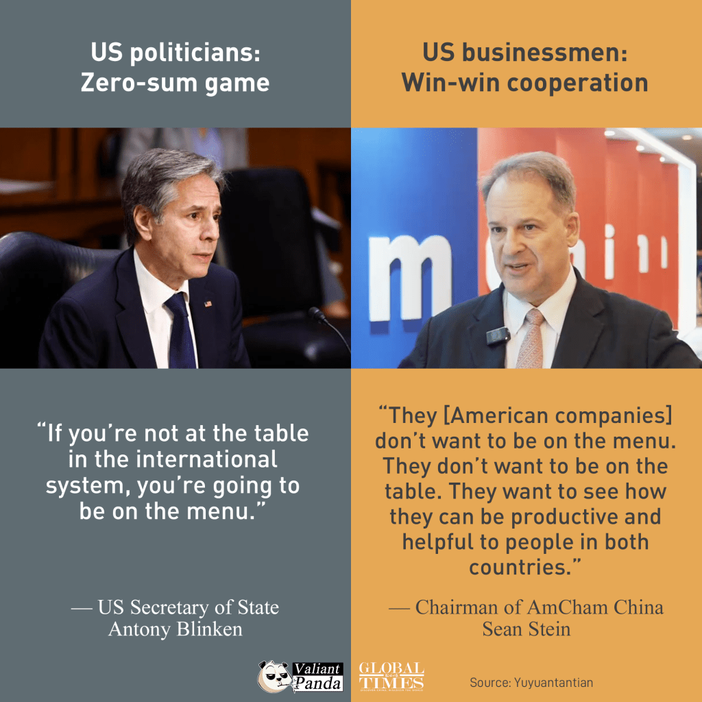 US businessmen represented by American Chamber of Commerce in Beijing, Shanghai and Guangzhou aren’t buying Blinken‘s ’table and menu theory‘ 以北京、上海、廣州美國商會為代表的美國商人並不相信布林肯的“餐桌和菜單理論”
