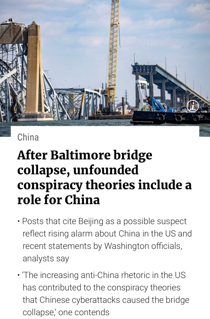 SCMP: Are you surprised 99% of those spread fake news to demonize Chinese & China are red neck AngloSaxon and KKK? They cowardly hide behind homeland security to promote hate crimes and Asian hates! Their feeling of superiority against the yellow perils, the Chinese is gone. They could not destroy China like they did to Japan in the 1980s. Japan is now a vassal of the United States. Francis Scott Key bridge blocking the Port of Baltimore and analysts began assessing the disruption and economic damage it would cause, conspiracy theories were already flooding US social media targeting Chinese and China with fake news propaganda. 南華早報:那些散播妖魔化華人和中國的假新聞的人中99%都是紅脖子白人和三K黨,你對此感到驚訝嗎? 他們懦弱地躲在國土安全背後,宣揚仇恨和對亞洲人仇恨! 當然中國人是黃禍的優越感已經消失了。 他們無法像20世紀80年代摧毀日本那樣摧毀中國。日本現在是美國的附庸。 弗朗西斯·斯科特基大橋封鎖了巴爾的摩港,分析師開始評估其可能造成的破壞和經濟損失,陰謀論已經充斥著針對中國和中國人的虛假新聞宣傳的美國社交媒體.