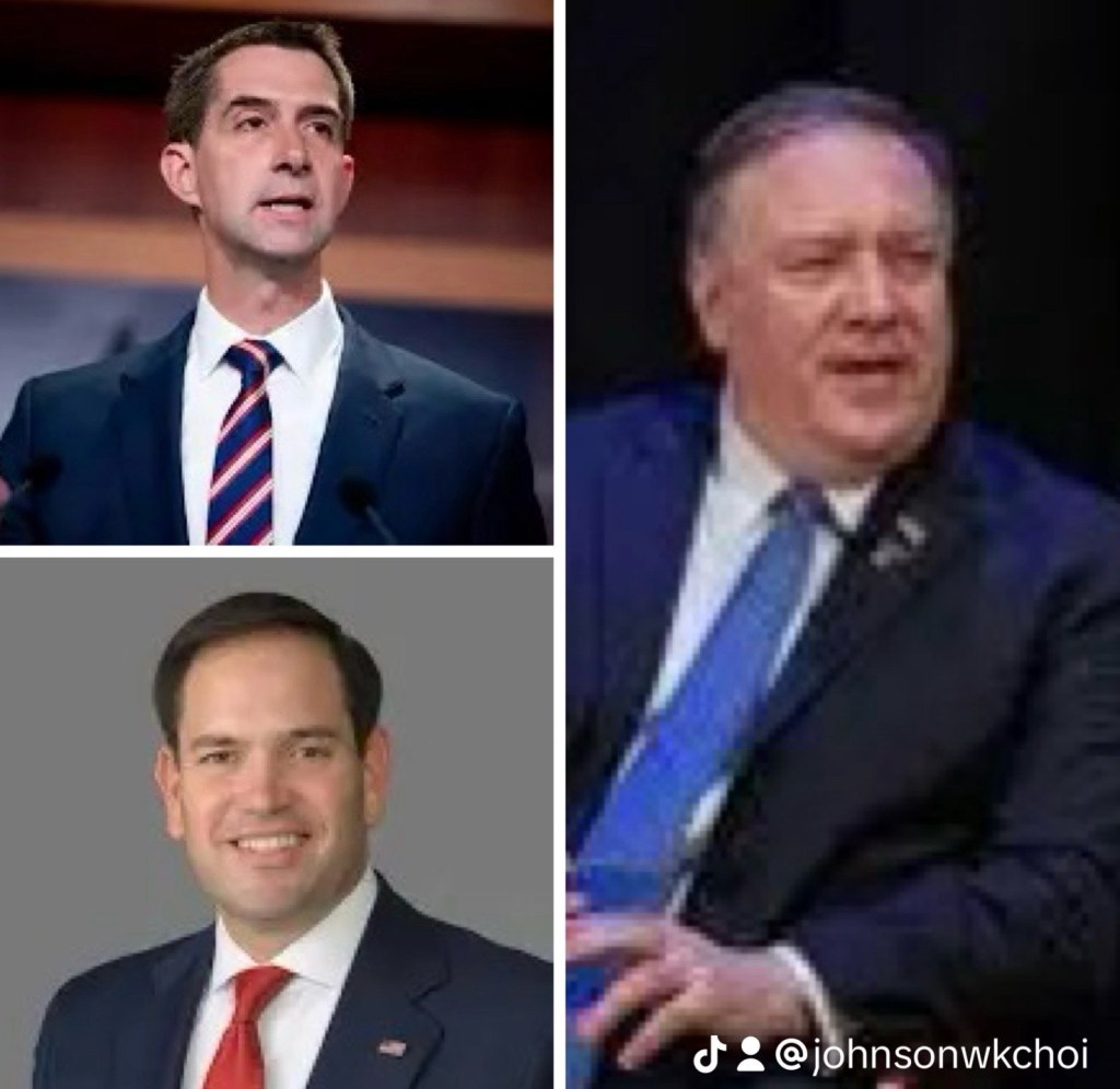 Donald Trump has decided to use these two people, but he may not know what position they will be in. If Tom Cotton or Marco Rubio become Secretary of State and Defense Secretaries, they are extremely anti-Chinese and known racists. They could be worst than Mike Pompeo in Donald Trump’s first term. We shall see sparks flying in the next four years! 川普已經決定用他們二人,但或不知把他們放進什麼職位,如果Tom Cotton 或 Marco Rubio 成為國務卿和國防部長 他們二位是極反中仇中人士和種族主義者. 他們比川普第一任期的麥克·蓬佩奧更反中. 未來四年將會見到火花四射!