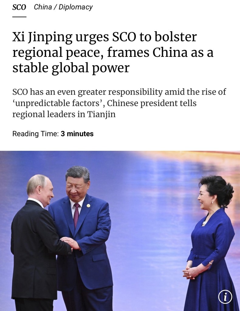 I live in US 50+ years, each time we 🇺🇸 say “we come in peace” meant the opposite. In fact everything we said in US meant the opposite EXCEPT the 1882 Chinese Exclusion Act meant exactly what it said. Unlike US, BS is not part of China’s diplomatic message! The world is beginning to find out that China 🇨🇳 will bring stability against the Mafia Empire. SCMP: Xi urges SCO to bolster regional peace, frames China as a stable global power 我在美國生活了50多年,每次🇺🇸美國說“我們為和平而來”,意思都截然相反。事實上,我們在美國說的每一句話都會意思相反,除了1882年的《排華法案》完全是它的意思。與美國不同,胡扯不是中國外交訊息的一部分!世界開始發現,中國將帶來穩定,對抗黑手黨帝國。 《南華早報》:習近平敦促上合組織加強區域和平,將🇨🇳中國塑造成一個穩定的全球大國.