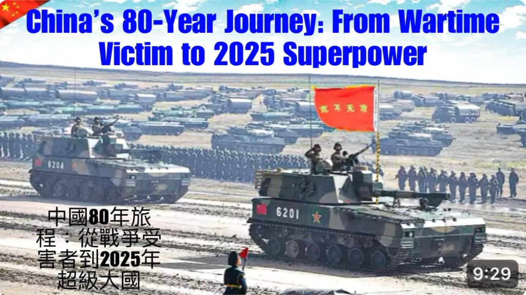 English video with Chinese subtitles: China’s 80-Year Journey: From Wartime Victim to 2025 Superpower 影片有中文字幕: 中國80年旅程:從戰爭受害者到2025年超級大國