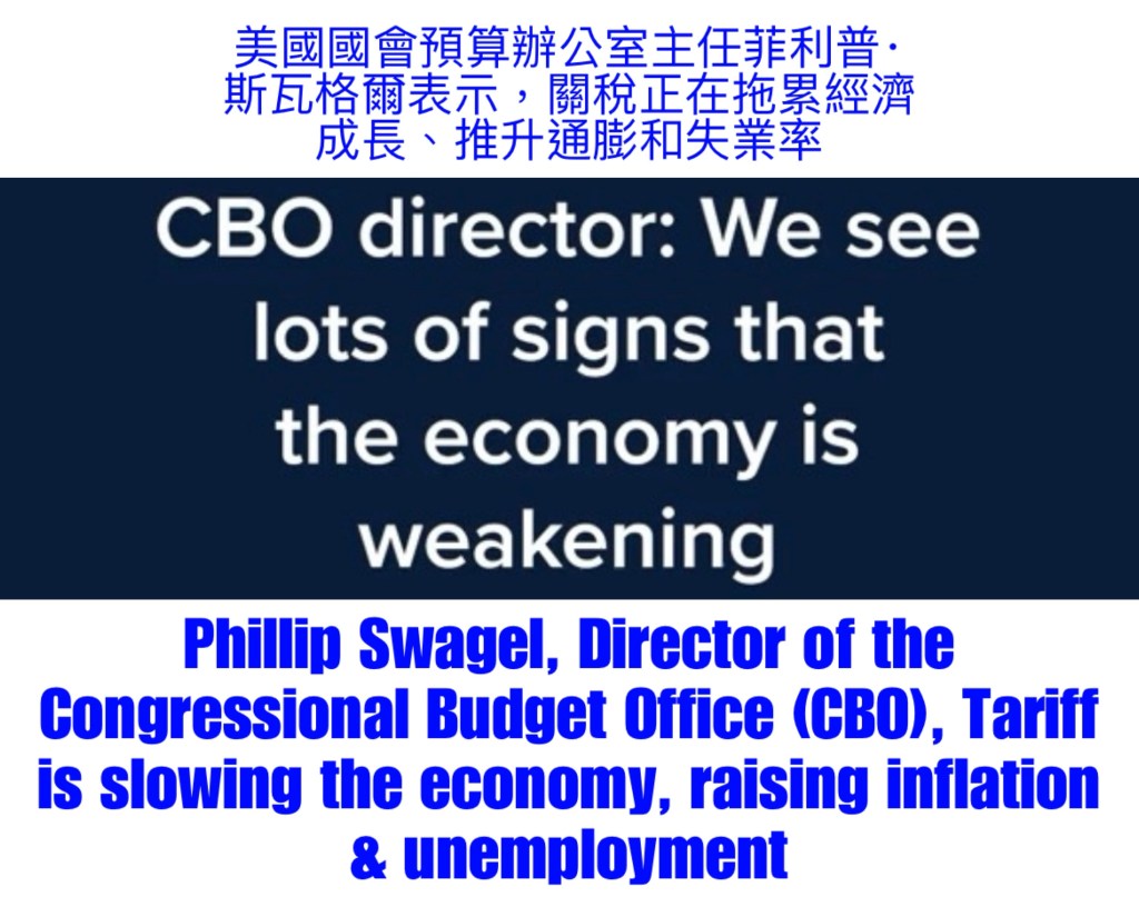 Video with Chinese subtitles: Phillip Swagel, Director of the Congressional Budget Office (CBO), Tariff is slowing the economy, raising inflation & unemployment 影片有中文字幕: 美國國會預算辦公室主任菲利普‧斯瓦格爾表示,關稅正在拖累經濟成長、推升通膨和失業率