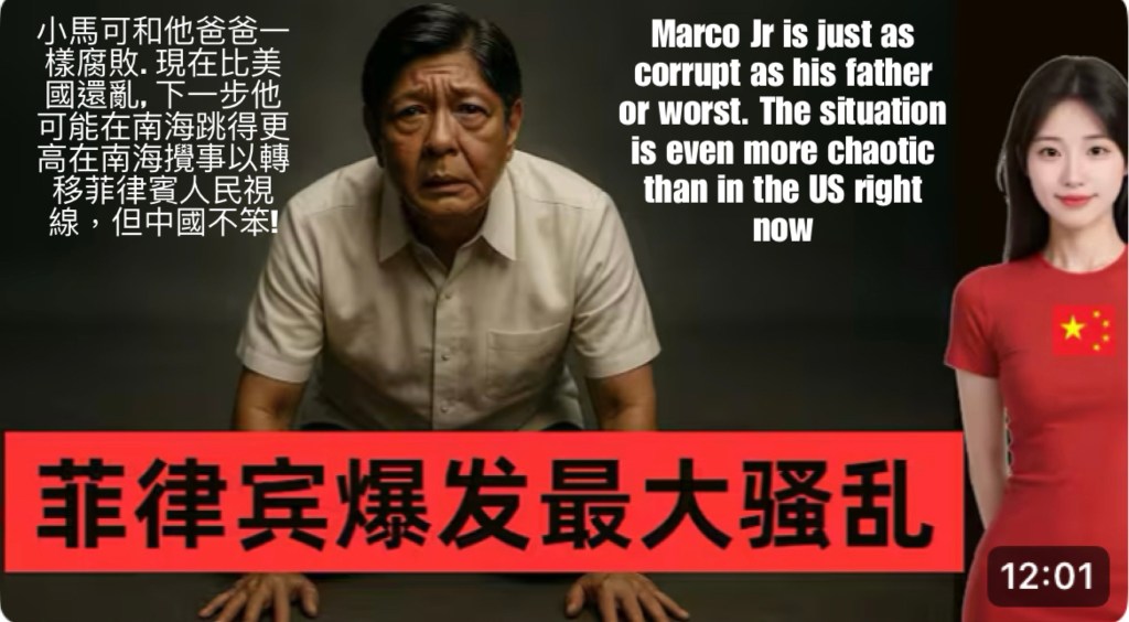 Video with English subtitles: The Chinese ambassador has just left! The Philippines is experiencing the biggest riots! The military is on red alert! Marco Jr is just as corrupt as his father or worst. The situation is even more chaotic than in the US right now. He might want to escalate confrontation in the South China Sea to divert attention, but China isn’t stupid! He might end up fleeing to Hawaii like his father. 影片有英文字幕: 中國大使剛走! 菲律賓就爆發最大騷亂! 軍隊進入紅色警戒! 小馬可和他爸爸一樣腐敗. 現在比美國還亂, 下一步他可能在南海跳得更高在南海攪事以轉移菲律賓人民視線,但中國不笨! 最終他可能歩他爸爸的後塵逃去夏威夷.