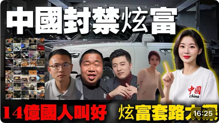 Video with English subtitles: Top China influencers are being banned for flaunting their wealth! Why is the government cracking down on “flaunting wealth”? While luxury cars and luxury goods dominate the internet, the true power of China is being forgotten 影片有英文字幕頂級網紅炫富被封鎖!為什麼國家要嚴打「炫富」?當豪車、奢侈品刷屏,真正的「中國力量」正在被遺忘!