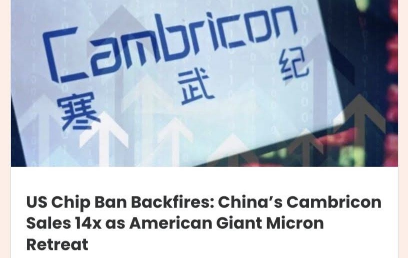 Complete report https://globalimpulsemedia.com/us-chip-ban-backfires-chinas-cambricon-sales-14x-as-american-giant-micron-retreat/