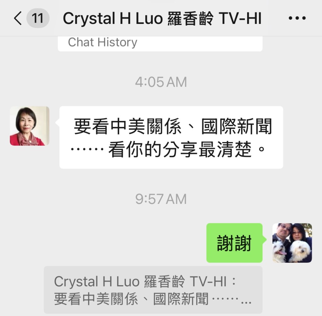 “If you want to know about Sino-US relations and international news, your sharing will give you the clearest results.要看中美關係、國際新聞⋯⋯看你的分享最清楚.”
