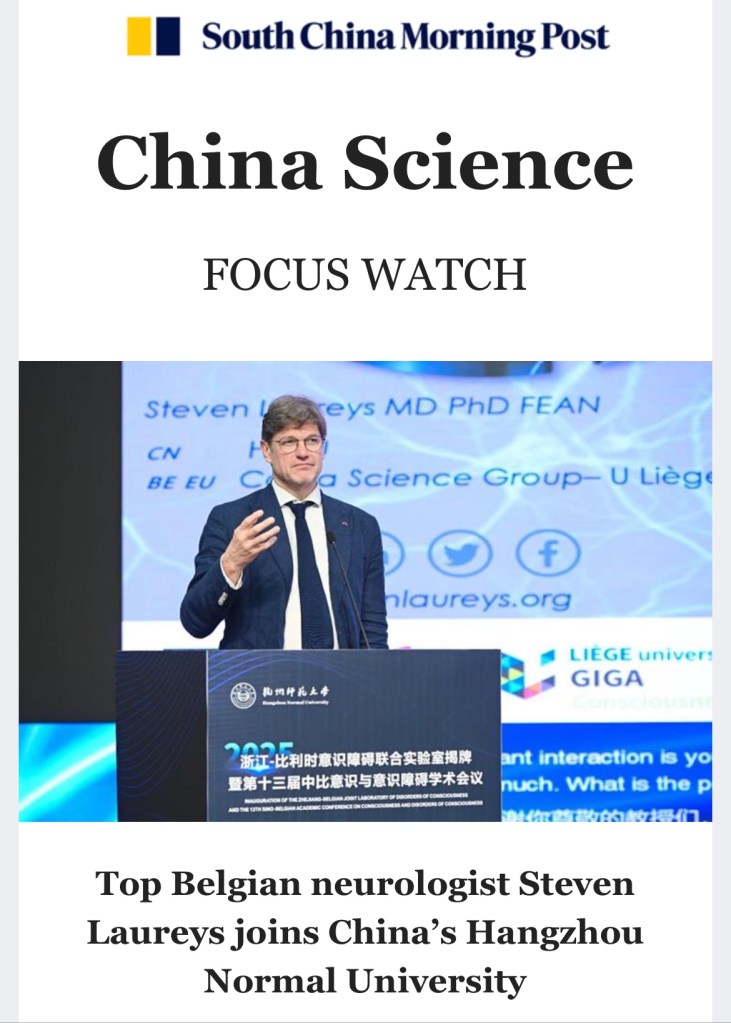 More Western Scientists are joining China’s top universities! SCMP: World-renowned neurologist and consciousness research pioneer Steven Laureys has taken up a full-time university position in eastern China’s Zhejiang province. 更多西方科學家加入中國頂尖大學! 《南華早報》報道:世界知名神經學家、意識研究先驅史蒂文·勞瑞斯已在中國東部浙江省的一所大學擔任全職教職.