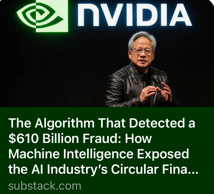 Last night at 4pm EST, something unprecedented happened. Nvidia stock rallied 5% on earnings, then crashed into negative territory within 18 hours. Wall Street algorithms detected what humans couldn’t: the numbers don’t add up.