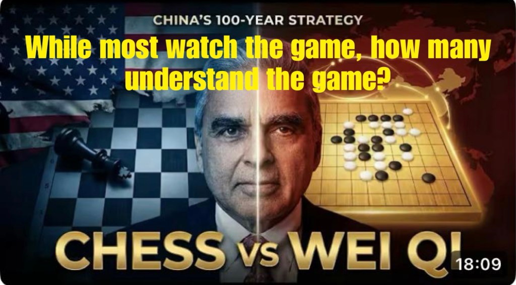 While America plays Chess—seeking decisive victories, regime change, and checkmate—China plays Wei Qi (Go), pursuing patience, encirclement, and quiet accumulation of power.