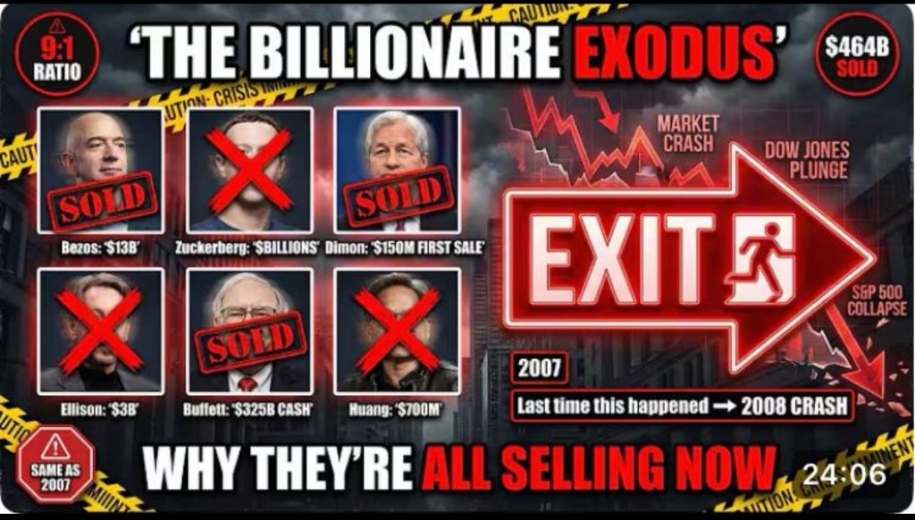 Video: Why Billionaires Are Selling Everything Right Now (They See What You Don’t) Just like they did in 2007 & 2008 leading to World Financial Crisis 影片標題:為何億萬富豪正在拋售一切(他們看到了你未見的徵兆)- 正如他們在2007至2008年金融危機前的操作