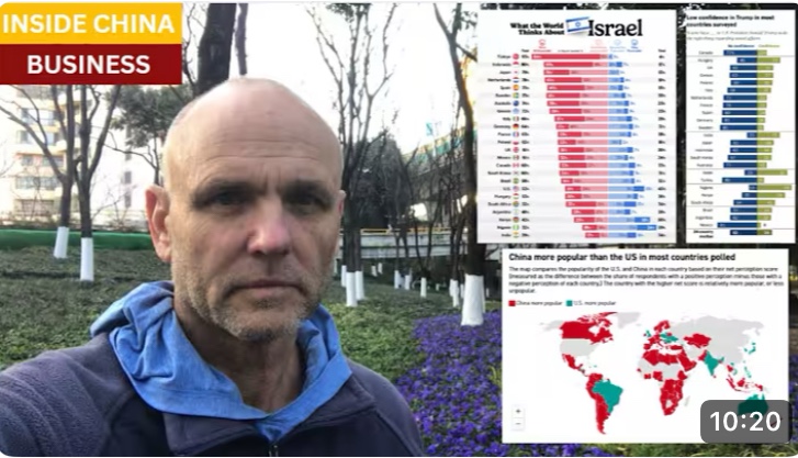 American logistic expert reports from China video: No one has positive view on US except Nigeria and Israel. Global opinion collapses for United States and Israel. That’s a big problem in the resource race. 美國物流在中國報導視訊有中文字幕: 除了奈及利亞和以色列,沒有國家對美國持正面看法。全球對美國和以色列的觀感急劇惡化。這在資源競逐中是個嚴重問題。