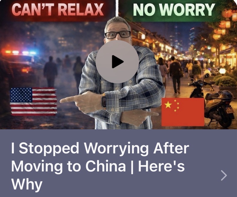 Watch his videos to understand! Have you wondered why a 65 years old White AngloSaxon California don’t speak Chinese happily lives in China for 15 years enjoying the quality of life not available in California or anywhere in US? And you can speak Chinese with financial resources still put up with the Asian Hates, Gun Violence, Drug and Homeless Problems and Racism everyday! Why? 觀看他的影片你就明白了!你是否曾好奇,為何一位65歲來自加州的白人裔,雖不會說中文,卻能在中國快樂生活15年,享受著加州甚至全美都無法企及的生活品質? 而你擁有經濟能力且會說中文,卻還要每天忍受仇亞現象、槍支暴力、毒品與遊民問題以及種族歧視!為什麼呢?