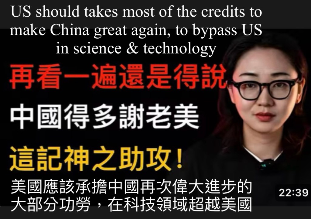 Video: US should takes most of the credits to make China great again, to bypass US in science & technology 中國得多謝老美,這記神之助攻! 中國清華北大等等大學的本科生80%都去了美國,他們畢業後祇是往錢看帮助美國科研不肯回國,直到美國白人反華對他們迫害才讓這些中國科學家明白不管在美國賺多少錢,生命不受保障,而且不少在美國無原無故的被自殺,最後是人在天堂錢在銀行. 這些華人科學家為了自身安全和前途,今天已經有數萬名美國華人頂尖科學家回國,美國應該承擔中國再次偉大進步的大部分功勞,川建國功勞最大,帮助中國在科技領域超越美國. https://youtu.be/MWI8K-ZhBno?si=GPsWzocz3T9ipqrQ https://www.tiktok.com/t/ZP8h4AJWA/
