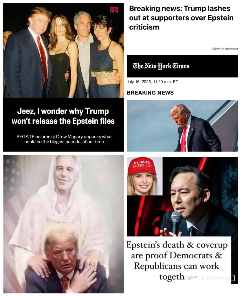 NYT: President Trump targeted his supporters who were critical on his decision not to release more information on Jeffery Epstein’s case about the rich & powerful in US have sex with underage girls 紐約時報:川普總統針對批評他的支持者不公佈更多有關傑弗裡·愛潑斯坦案信息(該案涉及美國富人包括他自己和權貴與未成年女孩發生性關係)