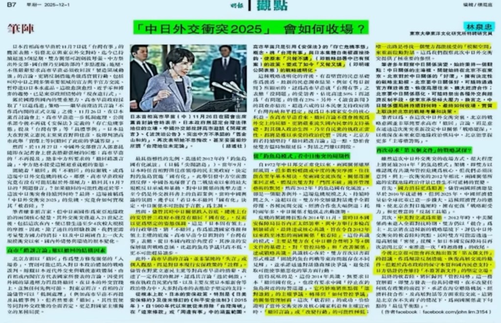 Possible Outcomes of What Ming Pao Calls the “2025 China–Japan Diplomatic Confrontation” — Based on Ming Pao and Other Public Reports/Commentaries