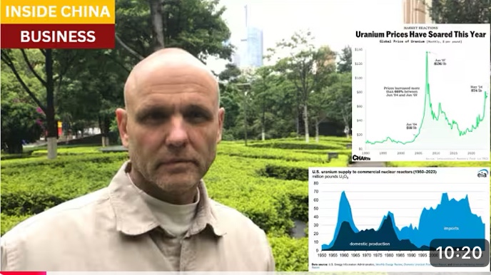 American logistic expert report from China video: Russia and China currently controlling 99% of uranium fuel and the future of global nuclear power of which US has none. 美國物流專家從中國發回的報告影片:俄羅斯和中國目前控制全球99%的鈾燃料和核電的未來,但美國卻沒有將永遠受制於中國和俄羅斯,絕無出路可言.