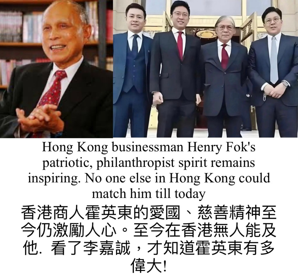 Hong Kong businessman Henry Fok’s patriotic, philanthropist spirit remains inspiring. No one else in Hong Kong could match him till today 香港商人霍英東的愛國、慈善精神至今仍激勵人心。至今在香港無人能及他.