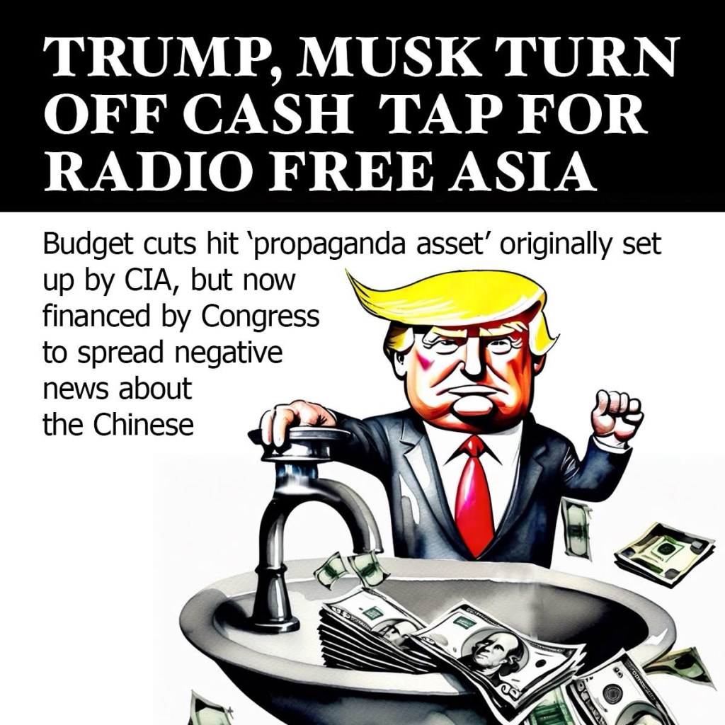 Donald Trump’s axe has reached Radio Free Asia. The anti-China news organization, based in Washington DC, has had its budget sharply chopped, Politico reported today. ·特朗普的斧頭已經砍到了自由亞洲電台。 《政治報》今天報導稱,這家總部位於華盛頓特區的反華新聞機構的預算被大幅削減.