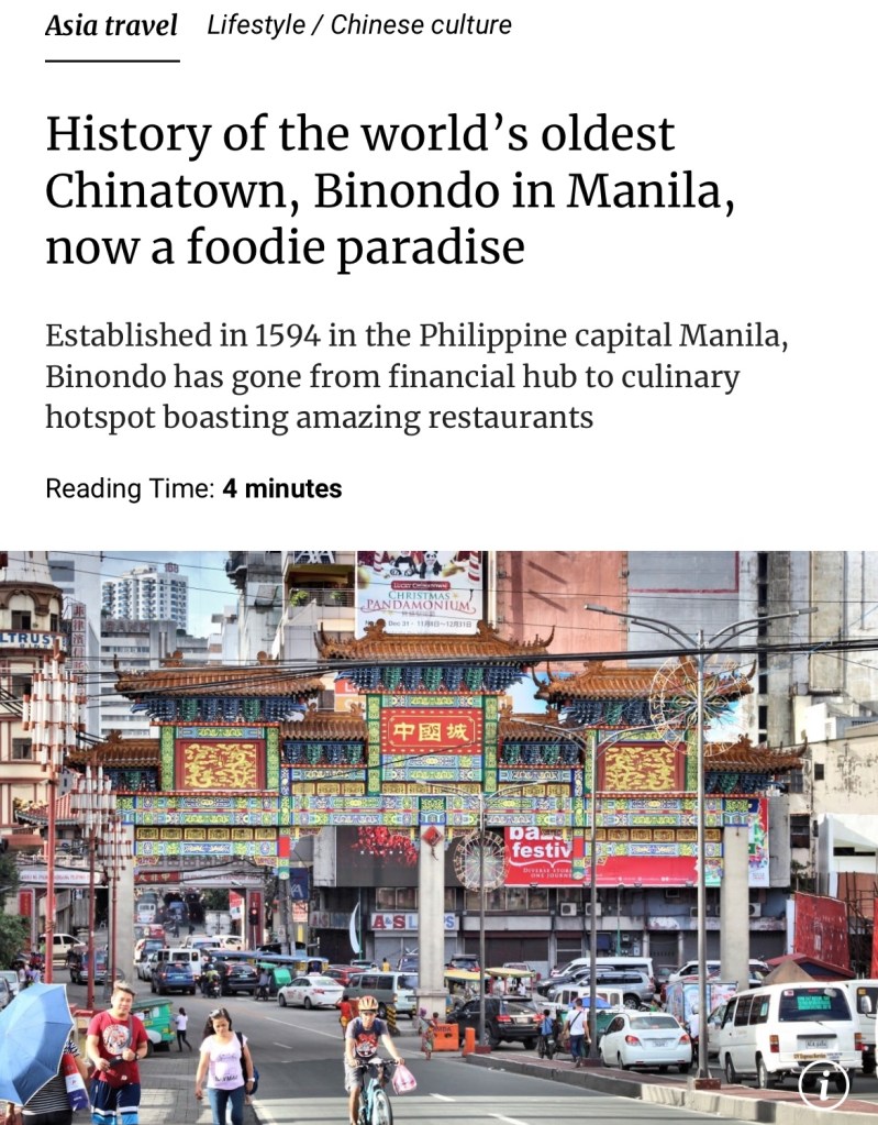 Both San Francisco and Hawai’i Chinatown lack imagination SCMP: The world’s oldest Chinatown and a rich mix of Chinese and Filipino culture, Binondo is found in the heart of the Philippine capital Manila. 舊金山和夏威夷的唐人街都缺乏想像力 《南華早報》:世界上最古老的唐人街,融合了中國和菲律賓的豐富文化,比農洛位於菲律賓首都馬尼拉的中心地帶.