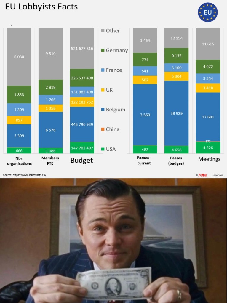 China Academy: To What Extent Do American Giants Influence Europe’s Decisions? The EU, often seen as a model of democracy and transparency, faces criticism for its opaque lobbying system, which undermines decision-making integrity. This article highlights the disproportionate influence of U.S. lobbying in Brussels compared to other nations like China, revealing significant imbalances that raise concerns about the fairness and transparency of EU legislative processes 中國研究院:美國巨頭在多大程度上影響歐洲決策?歐盟通常被視為民主和透明的典範,但因其不透明的遊說體係而受到批評,這損害了決策的完整性。本文強調了與中國等其他國家相比,美國在布魯塞爾的遊說影響力過大,揭示了嚴重的不平衡,引發了人們對歐盟立法程序公平性和透明度的擔憂 Feb 14 2025