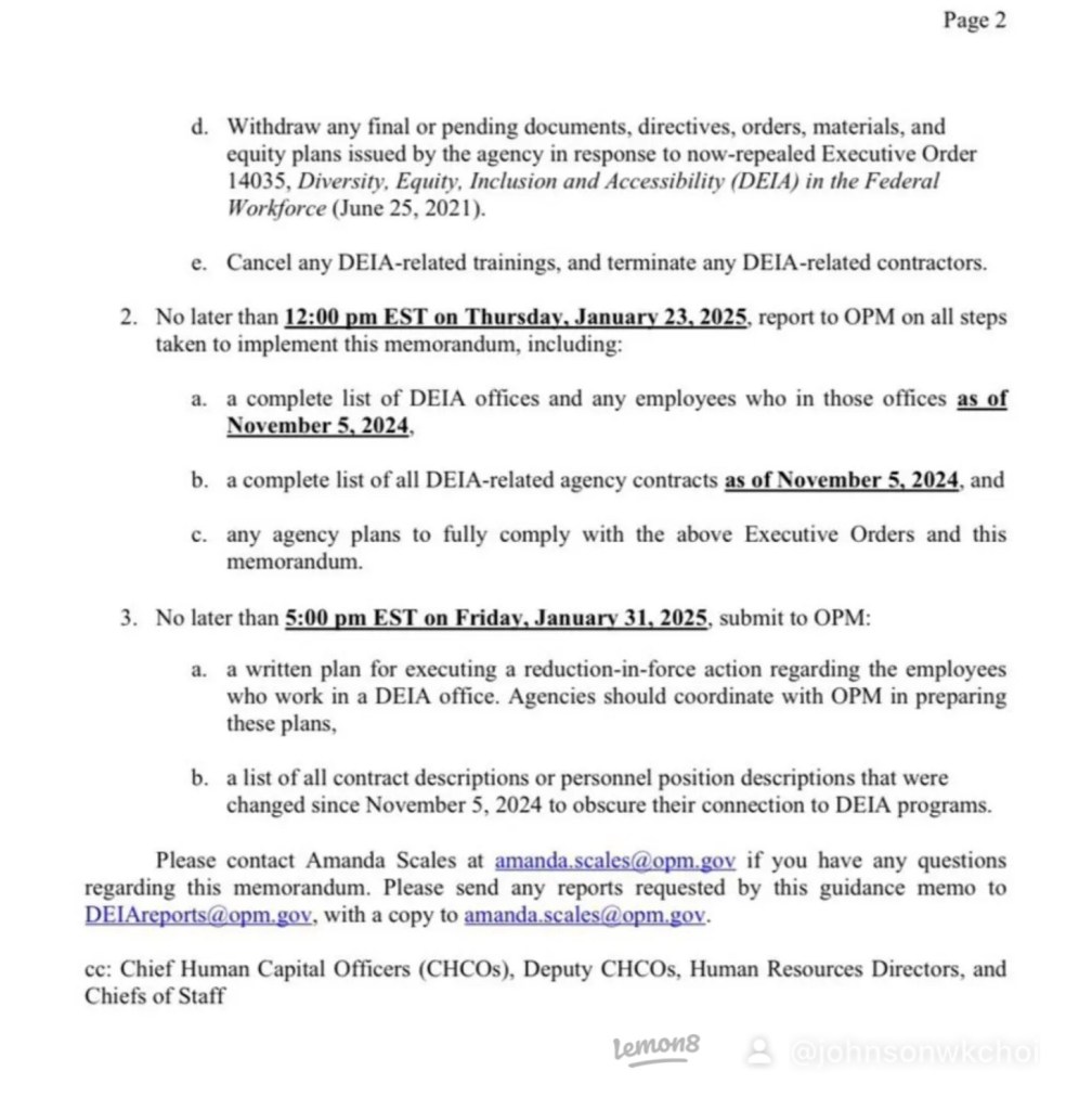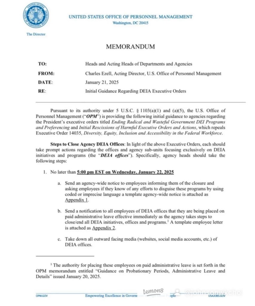 Donald Trump: All Diversity, equity, and inclusion (DEI) office in US to be shut down by Jan 22 2025 5:00pm 川普:美國所有多元化、公平和包容 (DEI) 辦公室將於2025 年 1 月 22 日下午 5 點全部關閉