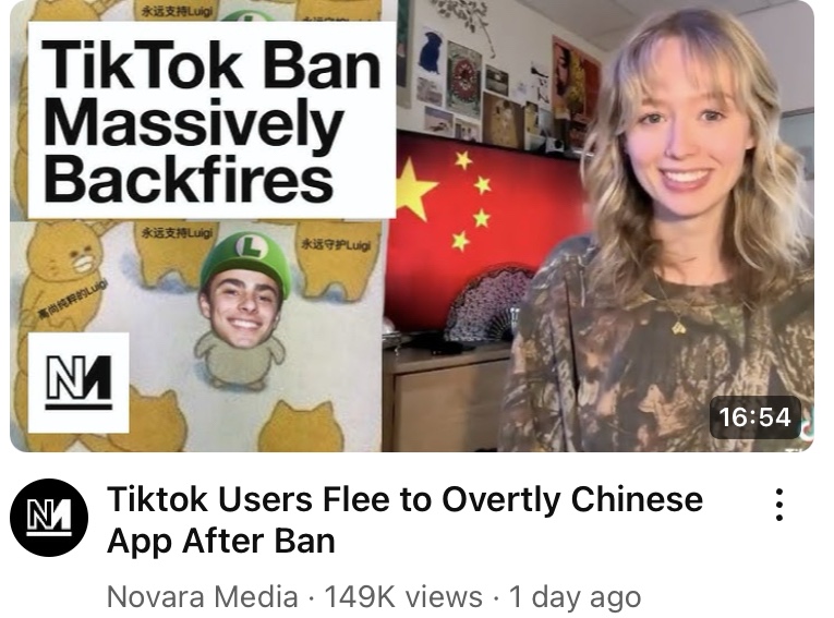 Video: Millions of US’s TitTok refugees to China’s XiaoHongShu featured by 100s of videos on YouTube, thanks to Biden & 2 US Tech Companies. US forcing millions of Americans to turn over their big data to a Chinese App companies, whereas TitTok big data is kept at Texas. All sanctions against China last 8 years complete failure!