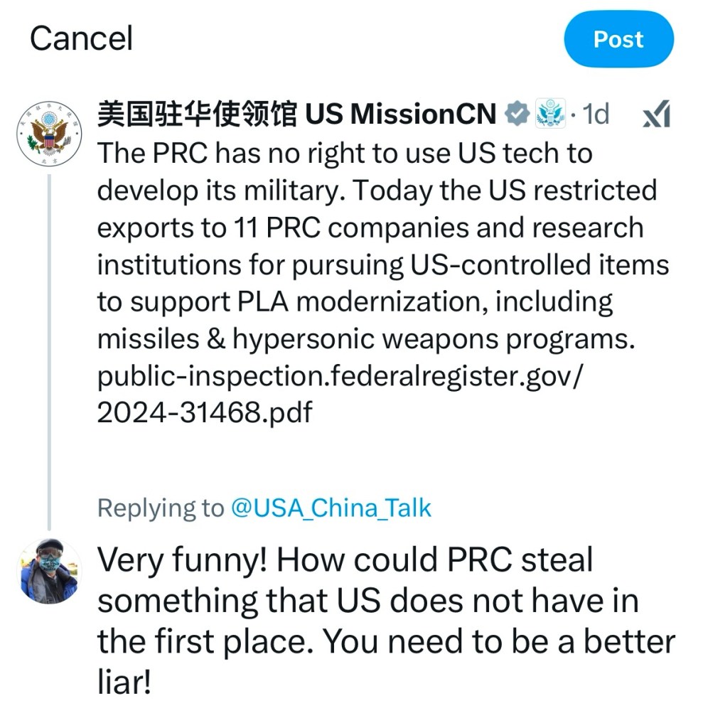 How could China steal something when US never had in the first place! Like Biden, you need to be a better liar! 美國本來就沒有的東西,中國怎麼可能偷呢!像拜登一樣,你需要成為一個更好的騙子!