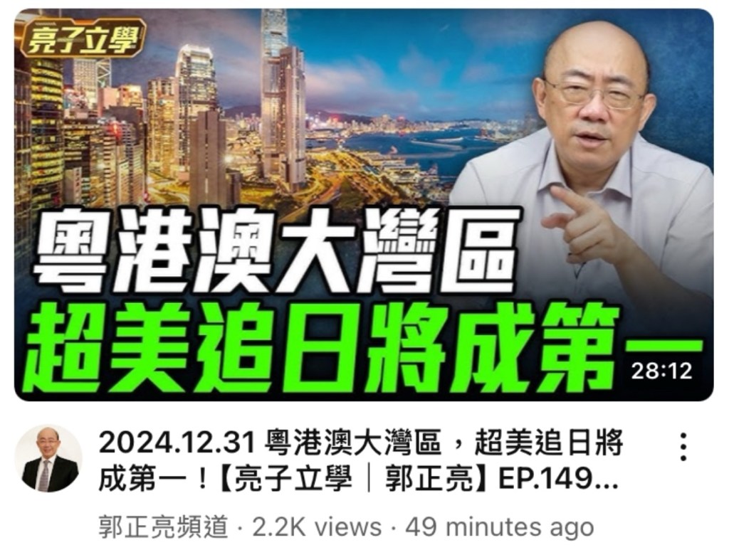 Taiwan US-China expert video: China’s “Hong Kong, Guangzhou and Macau Greater Bay Area” has already defeated San Francisco and New York’s Greater Bay Area, and will defeat Japan’s Tokyo Greater Bay Area in 2025 to become the world’s number one. China will surpass US in all areas in absolute terms by 2035.