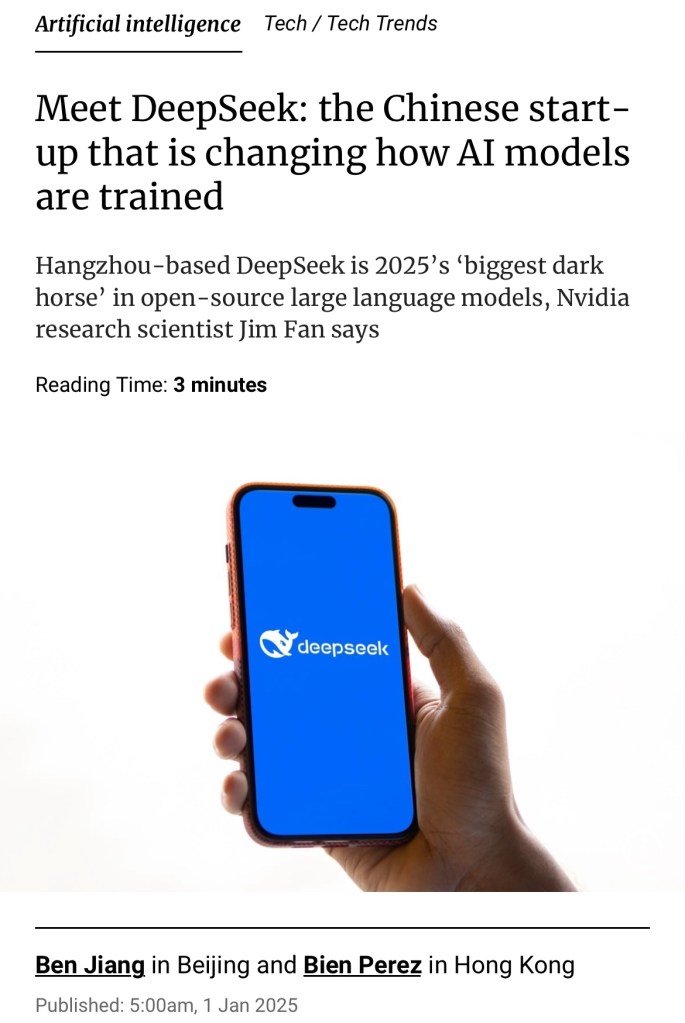 That assessment came from Jim Fan, a senior research scientist at Nvidia and lead of its AI Agents Initiative, in a New Year’s Day post on social-media platform X, following the Hangzhou-based start-up’s release last week of its namesake LLM, DeepSeek V3.