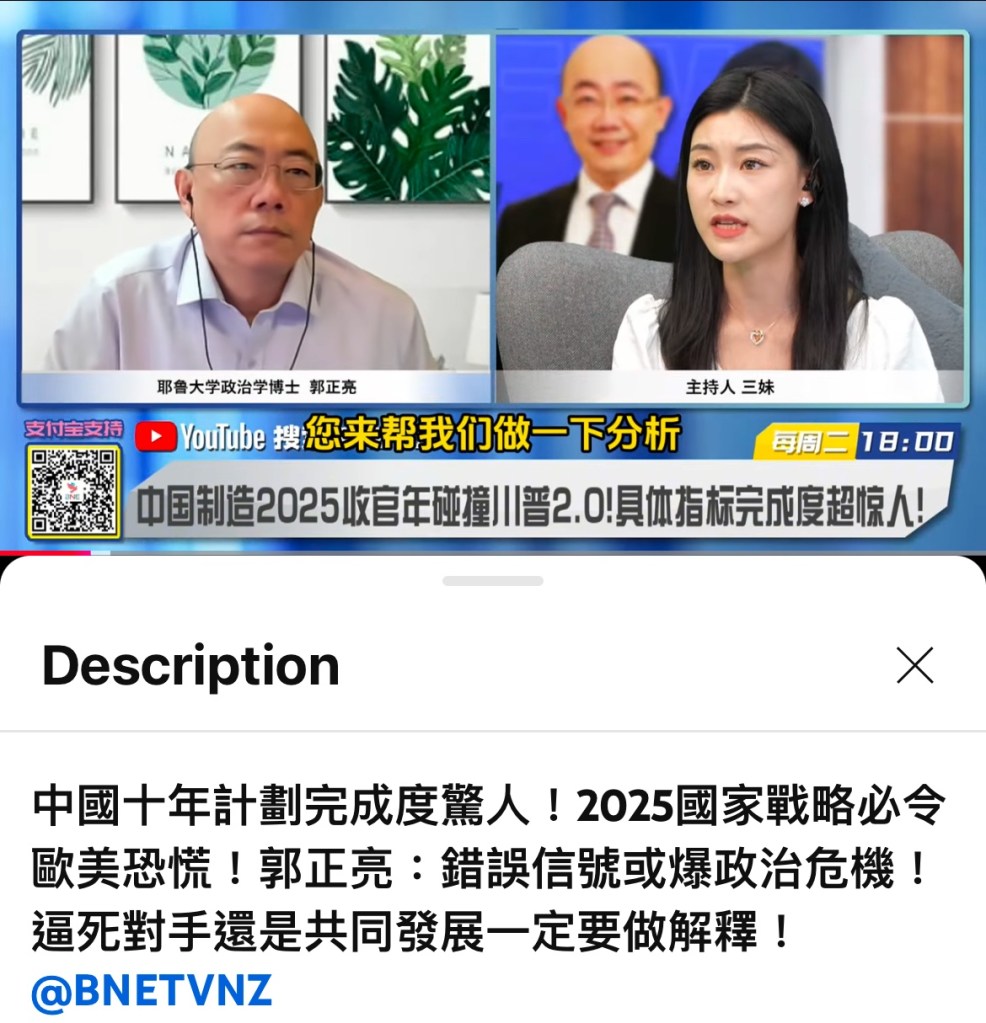 Video: China’s Ten-Year Plan has been completed at an astonishing rate! 2025 National Strategy will panic Europe and the United States 中國十年計劃完成度驚人!2025國家戰略必令歐美恐慌!郭正亮:錯誤信號或爆政治危機!逼死對手還是共同發展一定要做解釋!https://youtu.be/9U6d8i9dL0Y?si=BWrIzc6NHhmkOS3V 👈