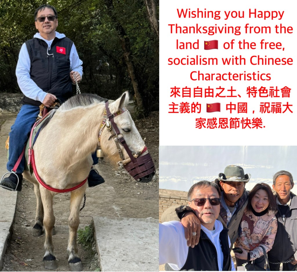 Wishing you Happy Thanksgiving from the land 🇨🇳 of the free, socialism with Chinese Characteristics. 來自自由之土、特色社會主義的 🇨🇳 中國,祝福大家感恩節快樂.