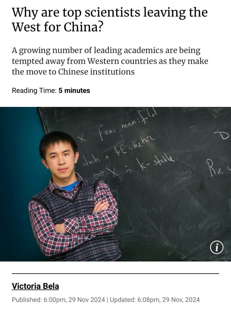 3) almost realize, but can’t quite articulate they were idiotic to assume innate US superiority in science & tech (since that superiority was powered by Chinese & immigrants)