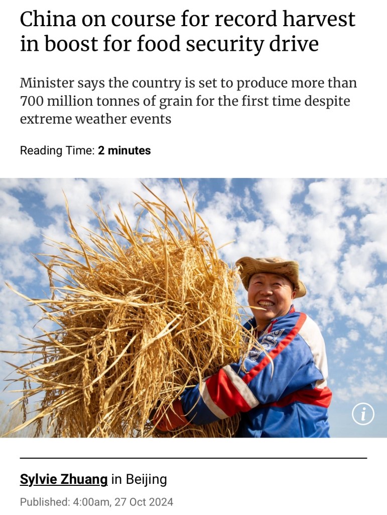 The harvest is expected to exceed 700 million tonnes for the first time this year, after nine straight years when it was above 650 million tonnes 繼連續九年超過 6.5 億噸後,今年的收成預計將首次超過 7 億噸