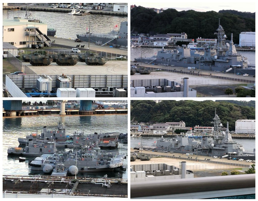 Report by Judge Julie Tang, SF Superior Court Judge (retired), On Oct 18 WE WERE on first china made ADORA MAGIC CRUISE SHIP TO SASEBO, JAPAN. OUR FIRST SIGHT WAS A FLEET OF JAPANESE WARSHIPS AT PORT. THERE WERE TANKS, WWII RISING SUN WAR Flags greeting 2000 chinese cruise passengers. japan has completely turned its back on its pacifist constitution and still in deep denial of comfort women, slave labor, rape of Nanjimg, unit 731 biologic and chemical warfare war crimes committed during WWII. 舊金山高等法院鄧孟詩法官 (退休)的報告,10 月 18 日,我們乘坐第一艘中國製造的阿多拉魔法遊輪前往日本佐世保。我們首先看到的是港口裡的日本軍艦艦隊。那裡有坦克、二戰旭日戰爭旗幟迎接 2000 名中國遊輪乘客。 日本完全背棄了和平憲法,並且仍然深深否認二戰期間所犯下的慰安婦、奴役、強暴南京、731部隊生物戰和化學戰戰爭罪行.
