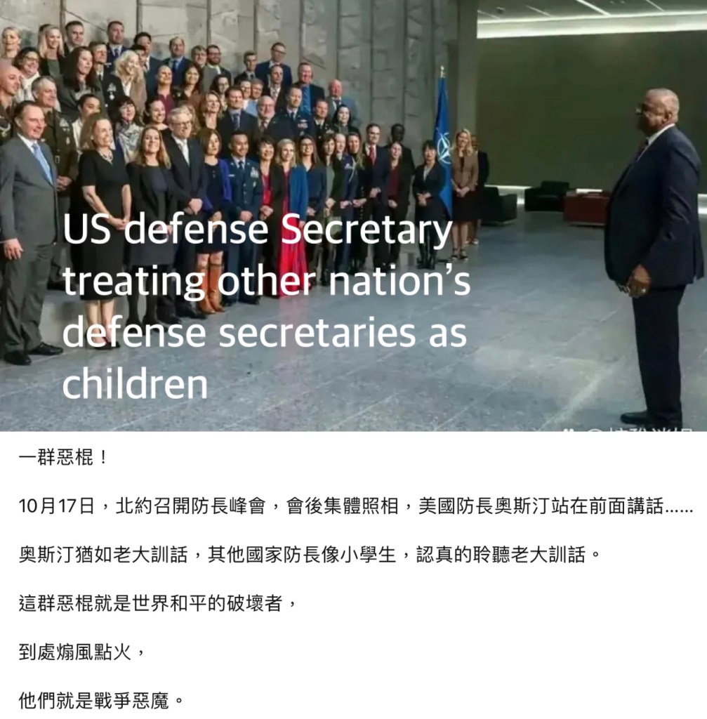 US defense Secretary treating other nation’s defense secretaries as children 美國國防部長把別國國防部長當小孩子對待