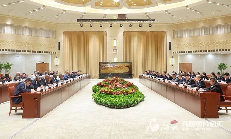 Xinjiang officials meet with Islamic Cooperation Organization delegation. US & Western hegemony have intentionally spread falsehoods about China’s Xinjiang Uygur Autonomous Region and initiated unilateral sanctions under the pretext of human rights, which constitutes unlawfully depriving the Xinjiang people of their rights to survival and development, Xinjiang regional officials said on Friday. 新疆官員會見伊斯蘭合作組織代表團。新疆地區官員週五表示,美國和西方霸權主義蓄意散佈有關中國新疆維吾爾自治區的謊言,並以人權為藉口發起單邊制裁,非法剝奪新疆人民的生存權和發展權.