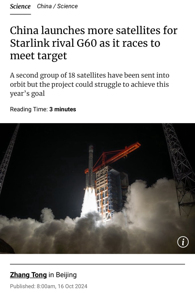 Sr VP Lu Ben told state CCTV in Aug that it aims to launch 108 satellites in 2024, 648 in 2025 & 15,000+ satellites by 2030 for regional network coverage. The goal is to complete the 1st stage of the project by 2027, with a constellation of 1,296 satellites for global coverage.